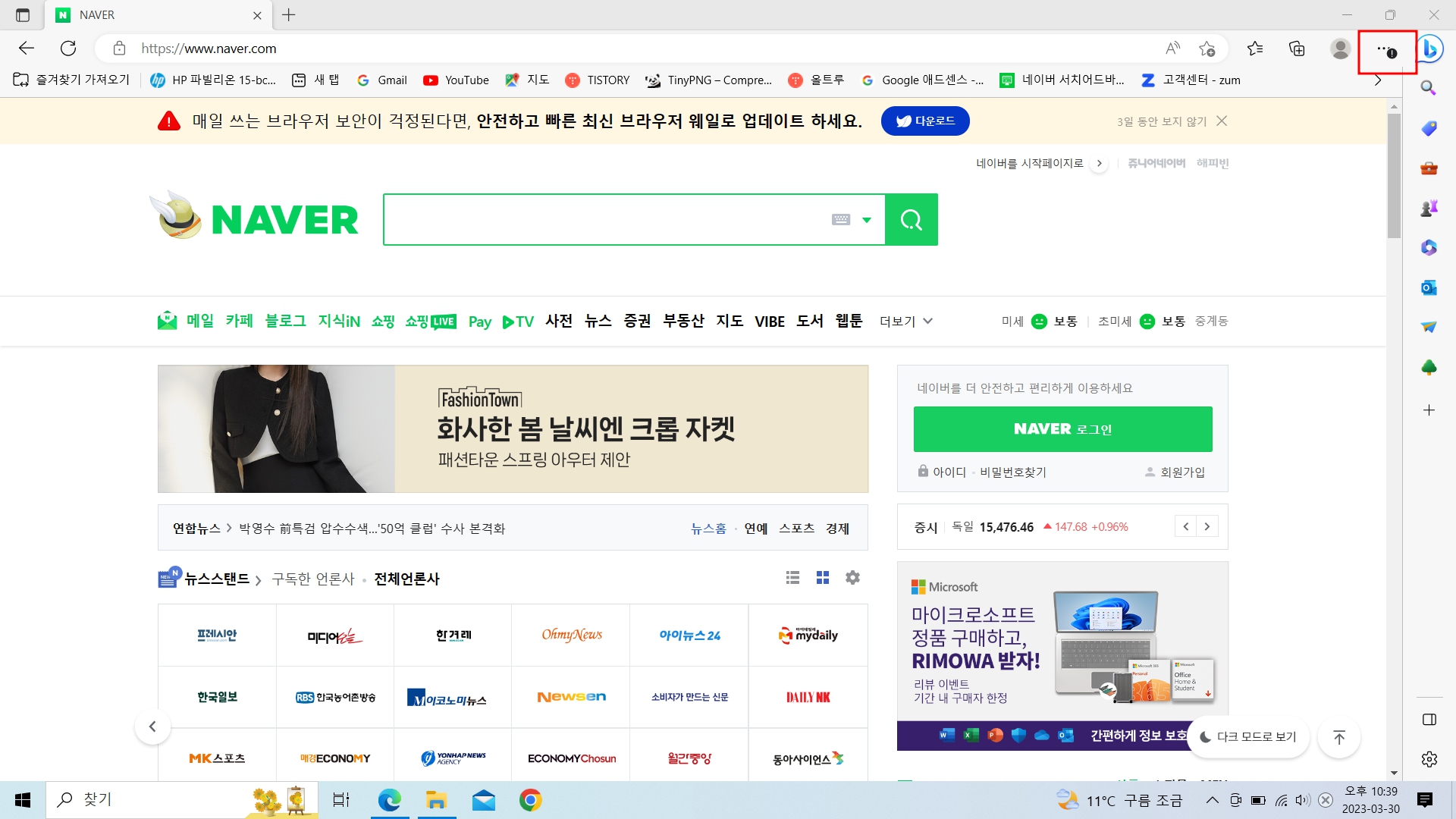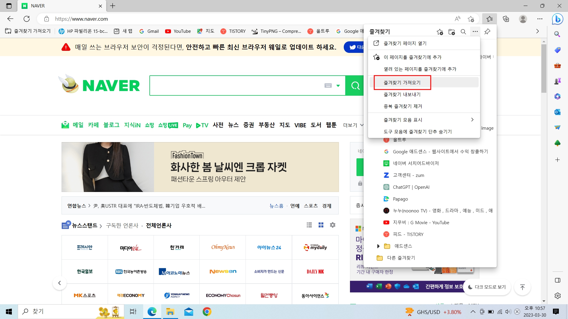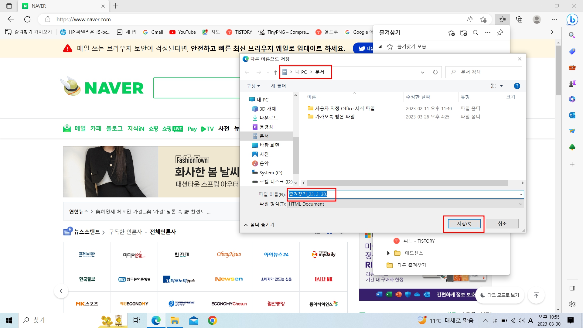통해 윈도우 재설치 후 가져오기를 통해 기존과 동일하게 즐겨찾기를 사용할 수 있는 방법에 대해 설명드리고자 합니다.