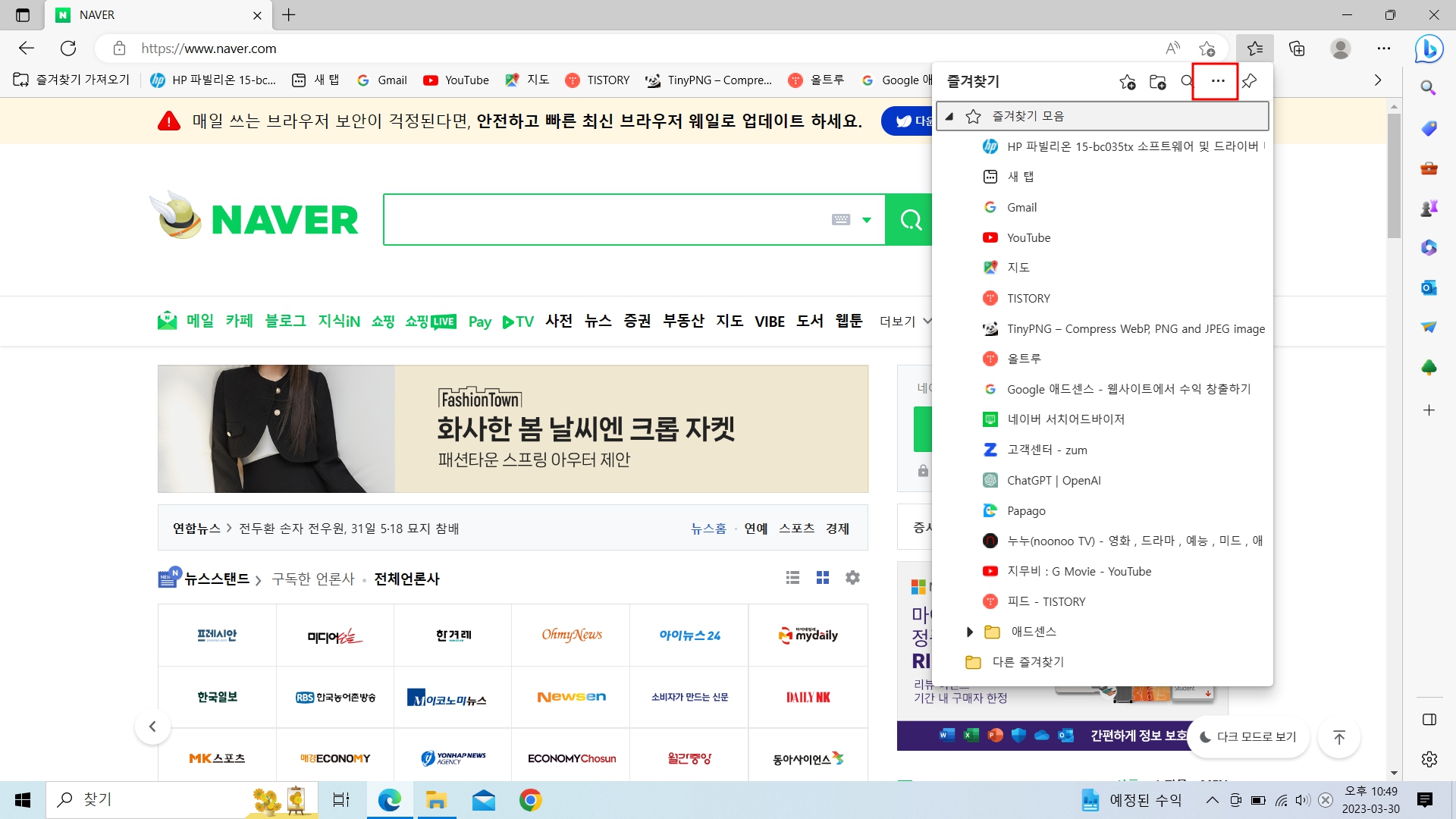 컴퓨터를 사용하다 보면 포멧 윈도 재설치가 필요한 경우가 있다 이경우 엣지(edge) 즐겨찾기는 백업(내보내기)을