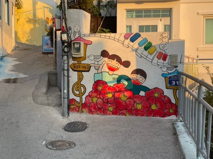 동피랑 벽화마을은 통영시가 내려다보이는 언덕 위에 위치해 있는데 통영시는 경치 좋은 해안 경관, 역사적인 장소, 문화적인 명소로 인기 있는 관광지이다. 이 마을은 원래 1950년대에 한국 전쟁의 피난민들을 수용하기 위해 지어졌지만 시간이 지남에 따라 발표했을 때 많은 주민들은 집과 공동체를 잃은 것에 대해 불만을 느꼈다. 그때 지역 예술가이자 활동가인 김행숙 씨가 마을을 야외 미술관으로 바꾸는 아이디어를 제안했다. 그녀는 마을의 빈 벽이 벽화와 다른 형태의 거리 예술을 위한 캔버스가 될 수 있는 가능성을 보았고 그녀는 자신의 비전을 현실로 만드는 것을 돕기 위해 예술가들과 자원봉사자들을 모았습니다. 그들은 스텐실, 그라피티, 전통 회화와 같은 다양한 기법을 사용하여 다채로운 디자인과 이미지로 벽을 칠하기 위해 지칠 줄 모르고 일했습니다. 동피랑 벽화 마을의 벽화는 다양한 주제와 양식을 아우르며 이 프로젝트에 기여한 작가들의 다양한 관심과 관점을 반영한다. 벽화 중 일부는 한국의 역사와 신화의 장면을 묘사한 반면 다른 것들은 환경주의 양성평등, 인권과 같은 현대 사회 문제를 다루고 있다. 많은 벽화들은 또한 유머와 기발함을 포함하고 있으며 마을의 전체적인 아름다움에 장난스럽고 가벼운 느낌을 더한다. 이곳에는 벽화 외에도 여러 카페, 식당, 기념품 가게 등이 있어 여행객들이 마을의 정취를 만끽할 수 있는 기회를 제공한다. 이 마을은 또한 1년 내내 문화 행사와 활동을 주최하는 주민센터가 있는 곳이기도 하다. 마을을 휘감고 있는 좁은 골목과 계단을 오르며 다채로운 벽화를 감상할 수 있다. 언덕 꼭대기에는 통영과 주변 산과 바다의 멋진 전경을 볼 수 있는 전망이 있다.