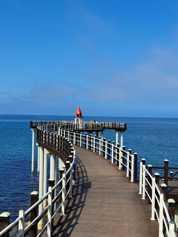 경상북도 포항에 있는 호미곶 해맞이광장은 아름다운 일출 광경으로 널리 알려져 있고 해돋이를 보기에 가장 좋은 장소 중 하나로 많은 사람이 해마다 방문한다. 광장은 우리나라 가장 동쪽에 위치하고 있으며 동해와 대한해협이 만나는 지점이다. 이 독특한 위치는 바다 위로 떠오르는 태양의 일출을 보기에 이상적인 장소이다. 광장은 배 모양으로 설계되었으며 바다가 내려다보이는 큰 갑판이 있다. 또한 하늘을 향해 뻗은 거대한 청동 손을 포함한 여러 조각품과 예술품들이 이 지역에 흩어져 있다. 이 손은 남북통일의 희망과 모든 국민이 서로 도우면서 잘 살자는 뜻을 상징하고 있다. 호미곶해맞이 광장에서 가장 인기 있는 명소 중 하나는 두 손이 서로를 움켜쥔 것이 특징인 상생의 손 조각이다. 이 조각품은 해안에서 바로 떨어진 큰 바위층에 위치해 있고 방문객들은 사진을 찍기 위해 썰물 때 그곳으로 걸어 나갈 수 있다. 해변에 있는 손조각에는 쉽게 접근할 수 없지만 광장에 있는 손에는 언제든지 접근하여 사진을 찍을 수 있다. 광장의 또 다른 인기 있는 행사는 1월 1일에 열리는 한 해의 첫 해돋이 행사에 참여하는 것이다. 수천 명의 사람들이 바다 위로 떠오르는 태양을 보기 위해 광장에 모여 새해를 맞이합니다. 이곳은 일출 외에도 광장 주변에 유채꽃이 조성되어 있어 꽃이 만발하는 4~5월 경에는 나들이 방문객도 많이 찾고 있다. 또한 카페, 레스토랑, 기념품 가게가 있으며 가족들을 위한 놀이터와 피크닉 공간도 마련되어 있다. 이처럼 호미곶은 해돋이의 절경과 다양한 볼거리를 제공하는 아름다운 관광명소이다.