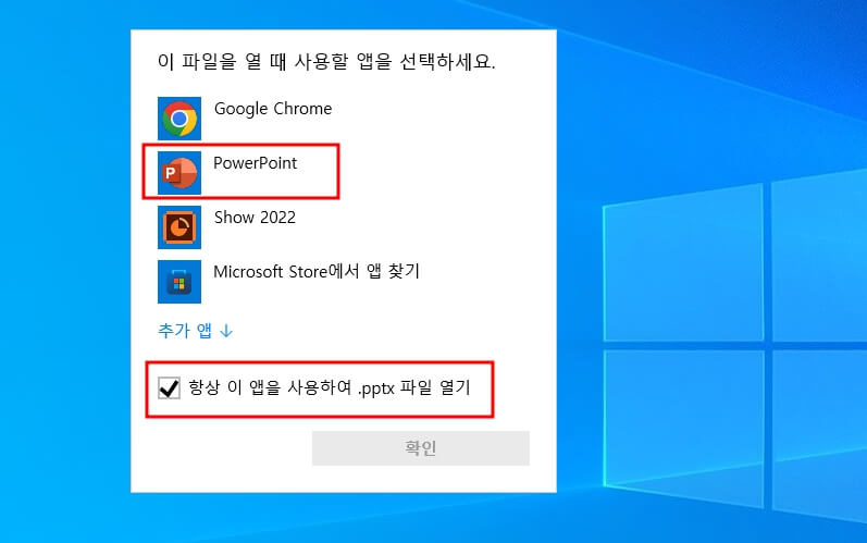 연결하기가 변경되었다면 열리지 않거나 파일이 깨지는 경우가 발생한다 이러한 경우 연결 프로그램